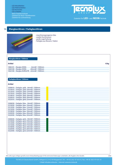 Glasröhren - TECNOLUX | Zubehör für LED- und NEON-Technik