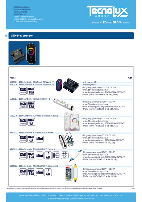Datenblätter LED-Controller RGB: