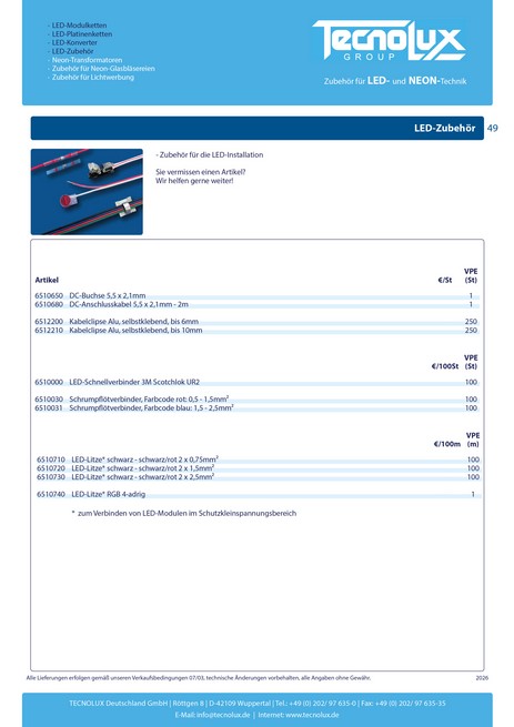 für LED-Zubehör. Fragen Sie gerne nach Sonder-