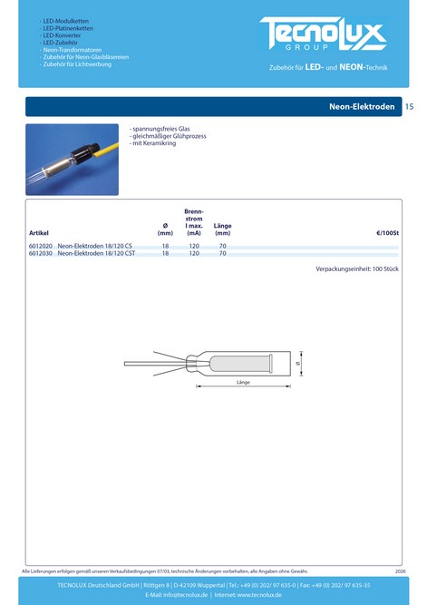 Neon-Komponenten - TECNOLUX | Zubehör für LED- und NEON-Technik