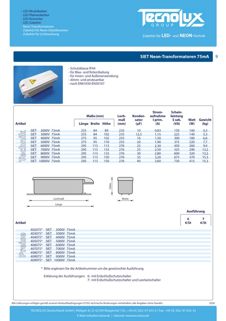 Neon-Transformatoren - TECNOLUX | Zubehör für LED- und NEON-Technik