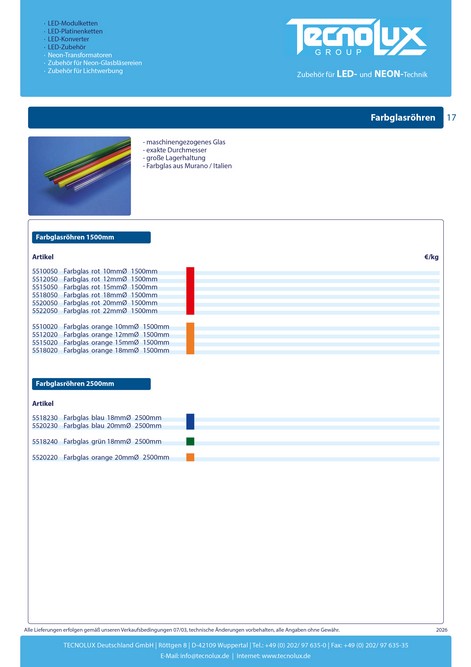 Glasröhren - TECNOLUX | Zubehör für LED- und NEON-Technik